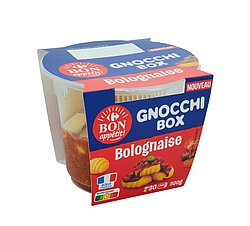 Fondez de plaisir avec la Gnocchi Box Champignons & Poulet Bon Appétit ! Pratique et gourmande, cette Gnocchi Box est parfaite pour les repas sur le pouce. Son format idéal ravira petits et grands. Découvrez une recette savoureuse avec des champignons fondants, du poulet français et une sauce crémeuse. Le plat réconfortant parfait pour un repas rapide, complet et délicieux !